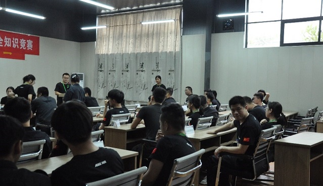 所有參賽者都在認認真真的聽著每一道提,深怕哪一道自己會的題目漏掉,與冠軍失之交臂。大家都對自己的安全知識信心百倍,希望為自己的部門爭得冠軍榮耀。必答題環(huán)節(jié)中,各代表隊選手都不相上下,幾乎正確率都在90%以上,所以一決勝負就看接下來的搶答環(huán)節(jié)了。